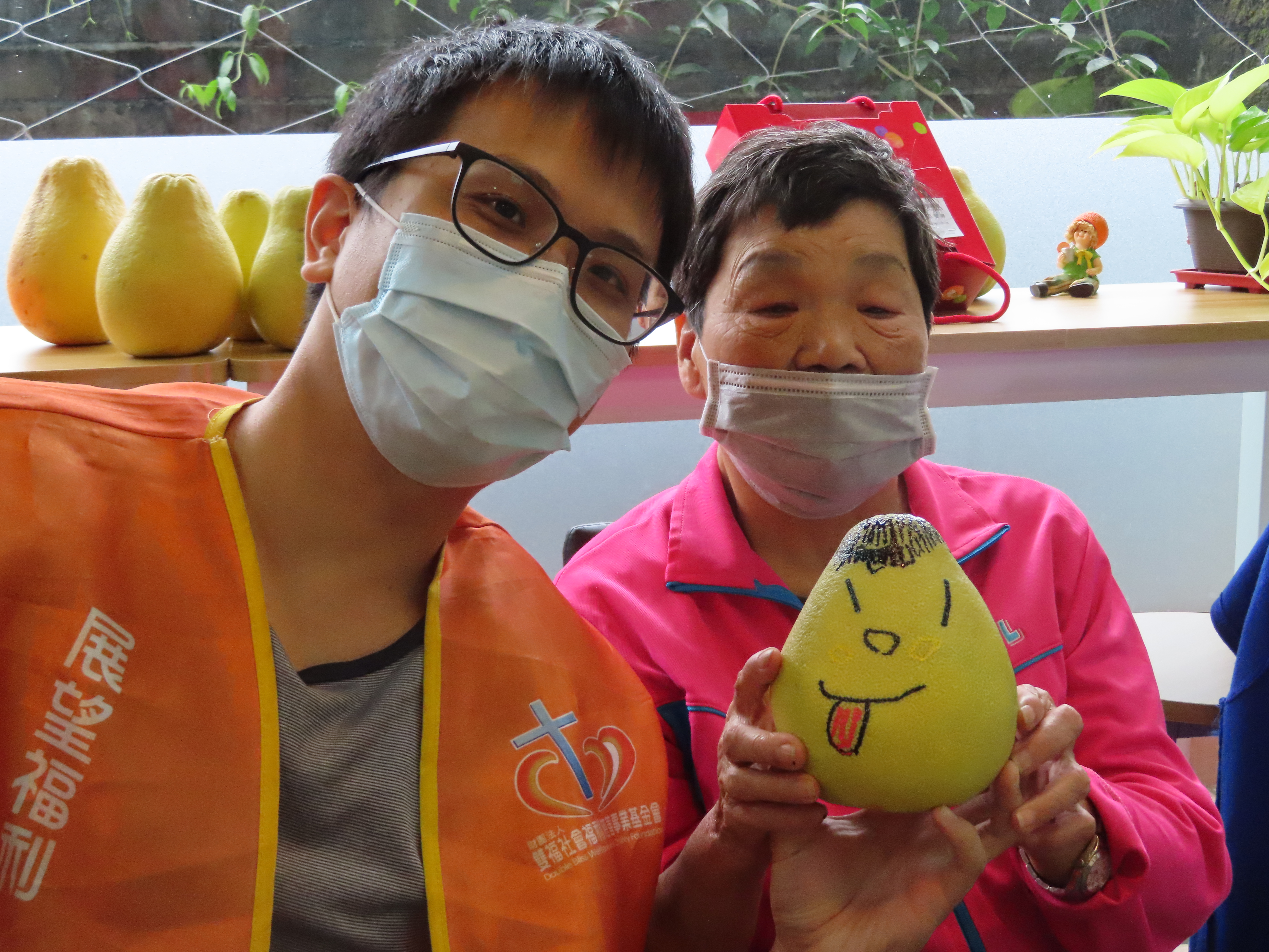 之後是有趣的柚子繪畫活動,長輩們畫得津津有味,有可愛的龍貓,也有生動的動物造型,出現了各式各樣的造型。
